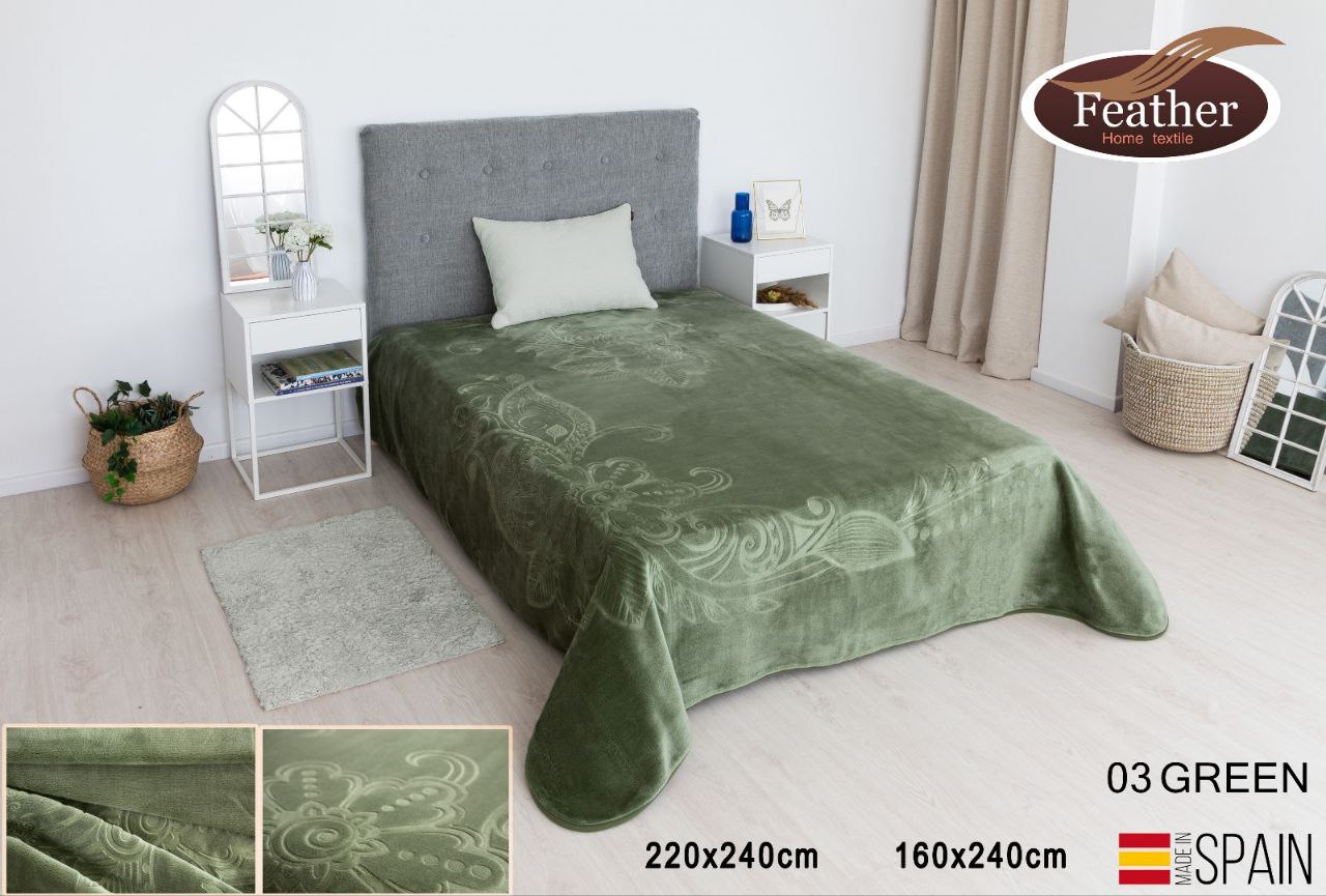 بطانية أسبانية راقية محفور طبقة واحدة ناعمة وأنيقة لشخصين مقاس 220*240 سم من ماركة فذر2