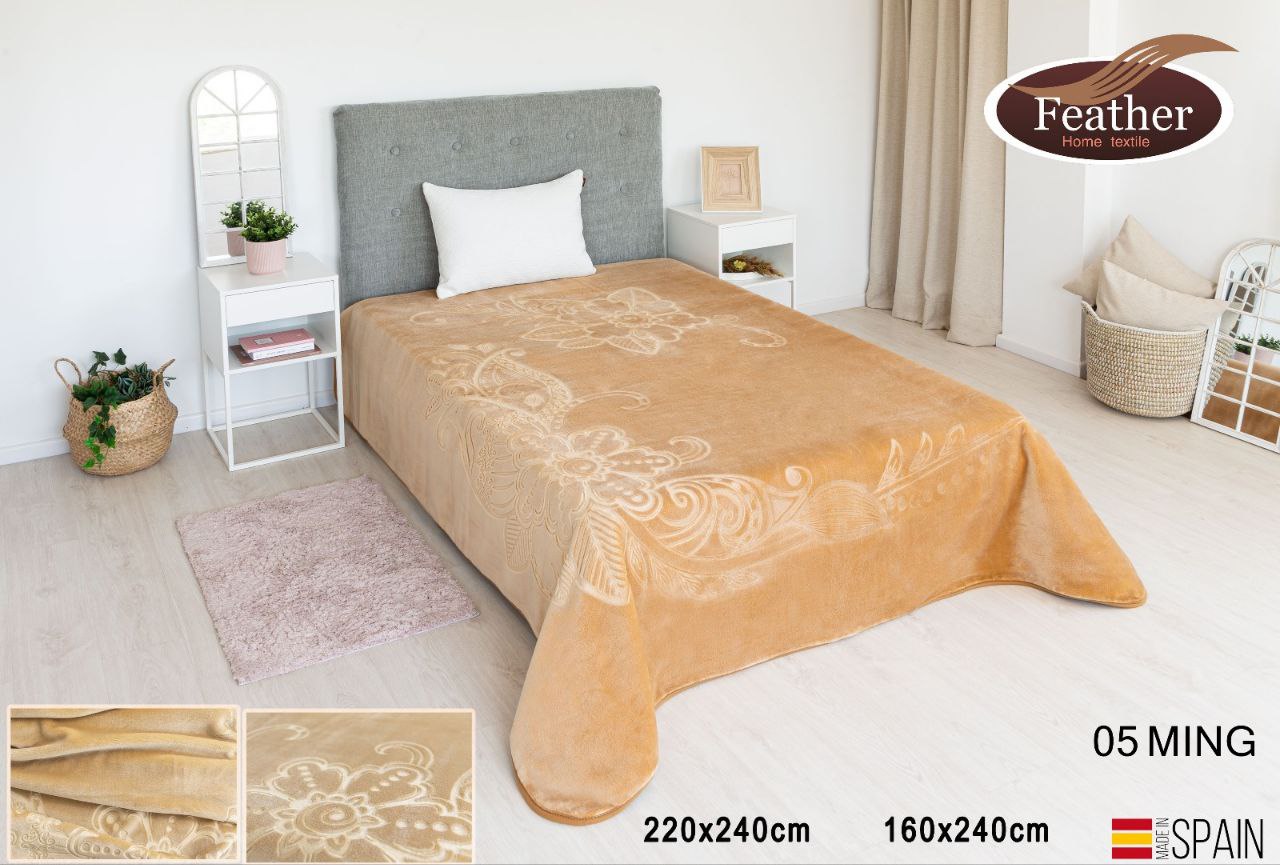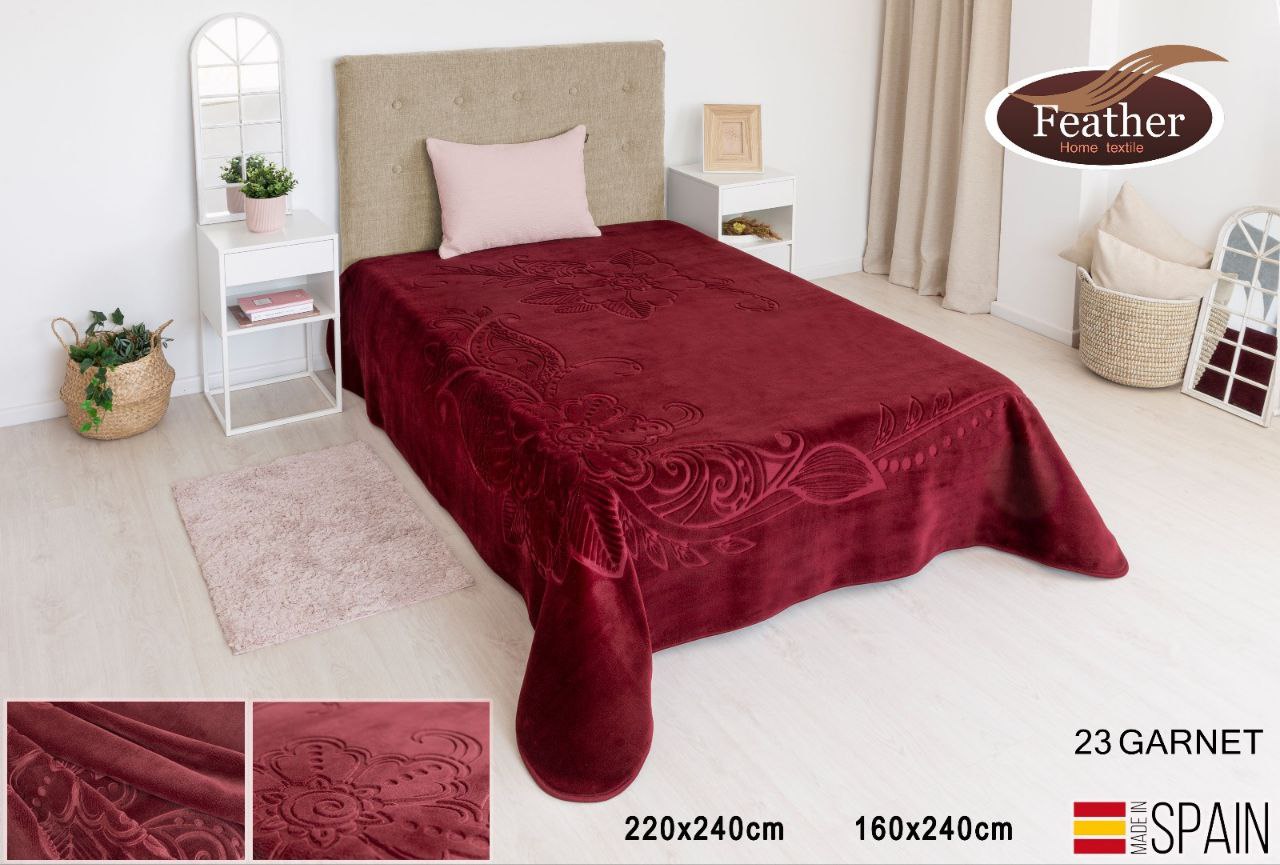 بطانية أسبانية راقية محفور طبقة واحدة ناعمة وأنيقة لشخصين مقاس 220*240 سم من ماركة فذر2