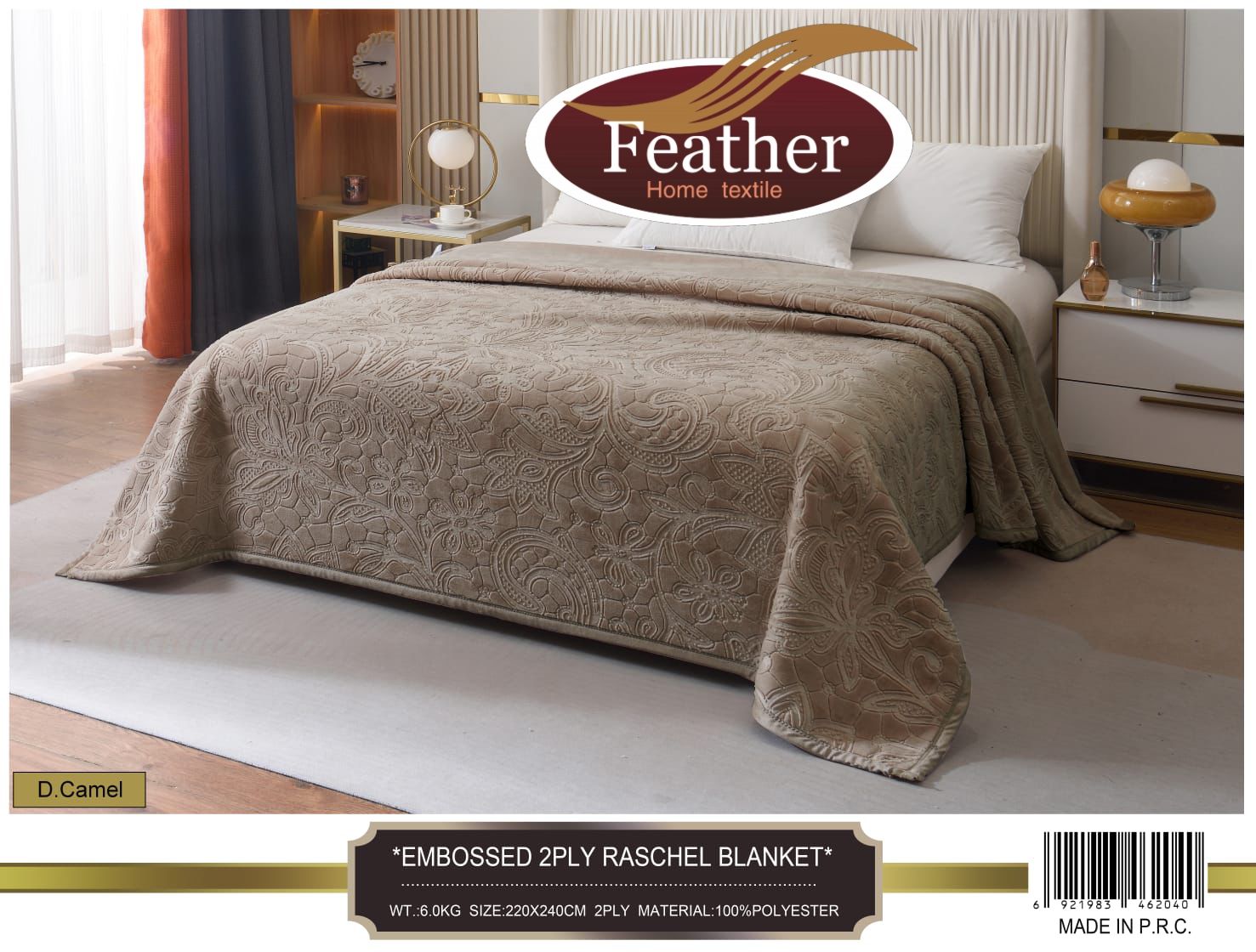 بطانية أسبانية راقية محفور طبقة واحدة ناعمة وأنيقة لشخصين مقاس 220*240 سم من ماركة فذر2