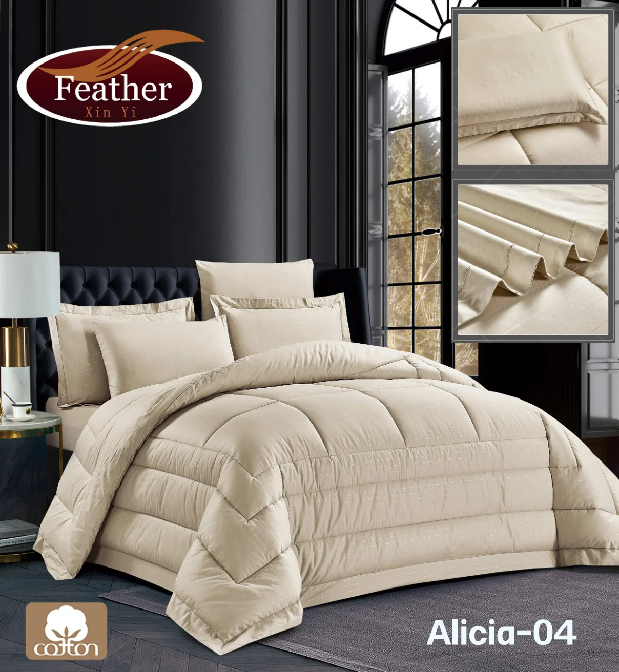 لحاف اليسا سادة قطن100% | كوين | 6 قطع Alicia-04