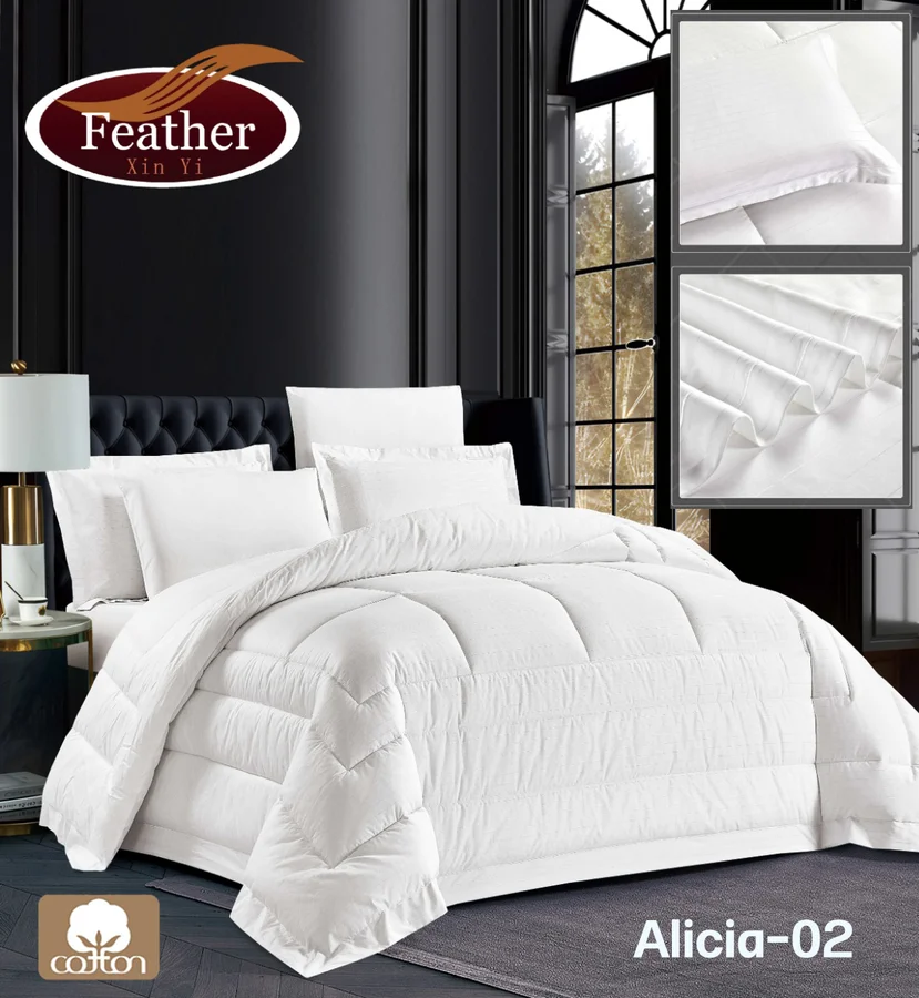 لحاف اليسا سادة | قطن100% | 6 قطع Alicia لحاف فندقي 260*240 سم شرشف 200*200+35 سم كيس مخدة عدد 2 فندقي مطرز 50*75 سم كيس مخدة عدد 2 فندقي 50*75 سم