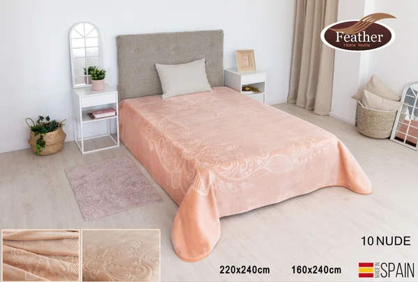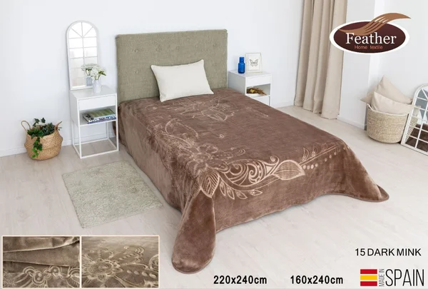 بطانية أسبانية راقية محفور طبقة واحدة ناعمة وأنيقة لشخصين مقاس 220*240 سم من ماركة فذر2