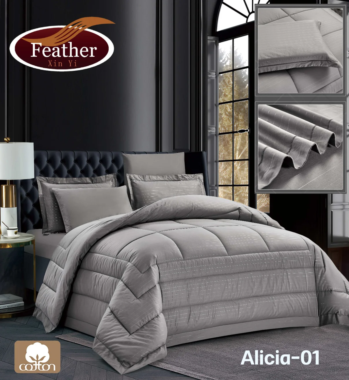 Alicia Plain 100% Cotton Duvet Set | Twin Size | 4 Pieces Alicia-01 4 Pieces: Hotel-Style Duvet 240*180 cm, Fitted Sheet, 1 Hotel-Style Pillowcase 50-75 + 5 cm border, 1 Hotel-Style Pillowcase 50*75 cm. Care Instructions: 1. Wash separately. 2. Do not bleach. 3. Do not tumble dry. 4. Iron at a maximum temperature of 50°C.
